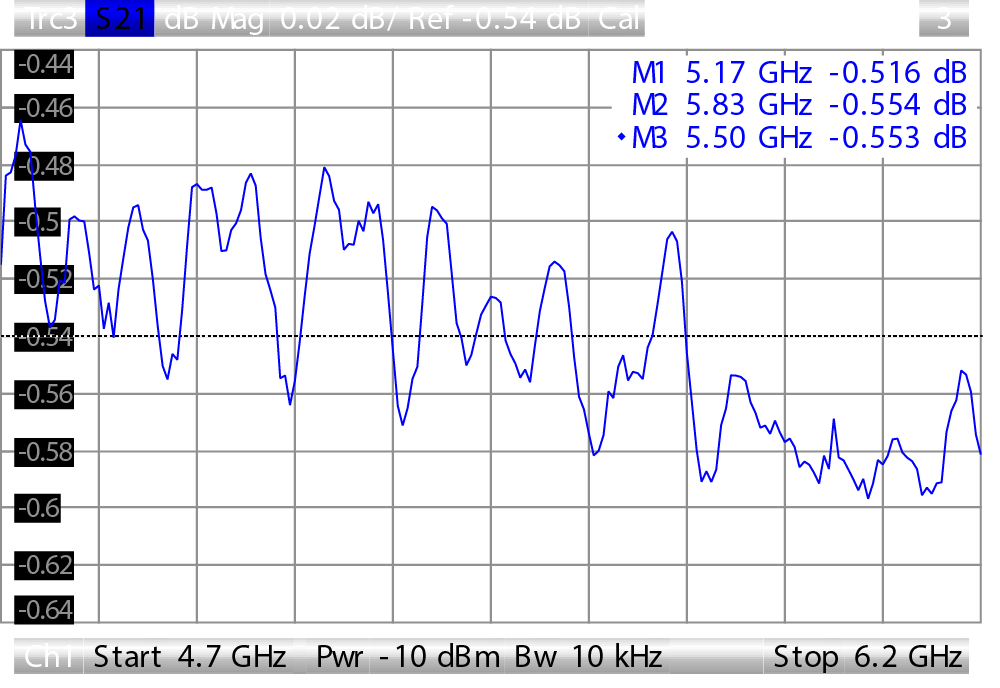 Total signal loss at 6GHz | 0.59 (Includes connectors. See chart for details) | |